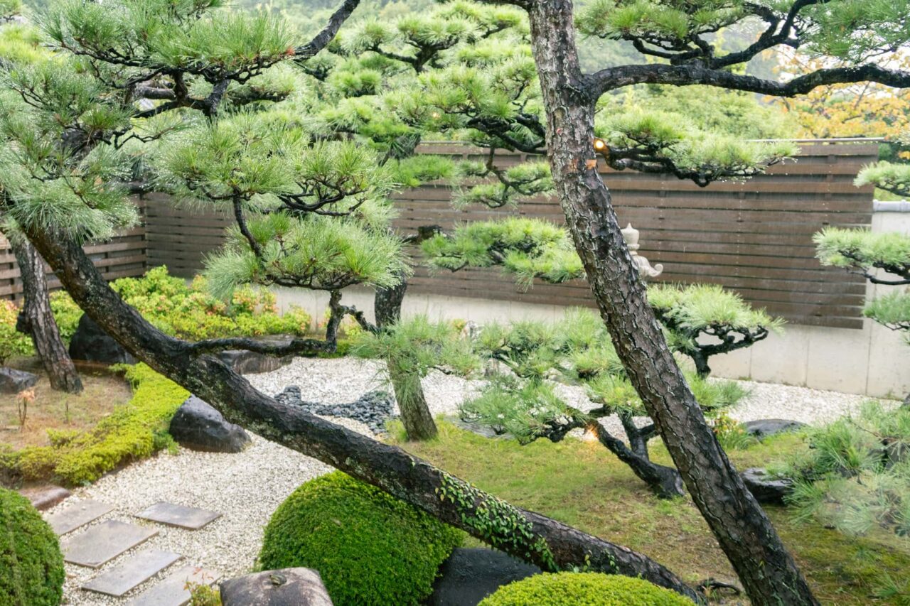 取材時は雨が降っていて、松の枝から雨粒が滴り落ちる様子がまた風情を感じさせていました。