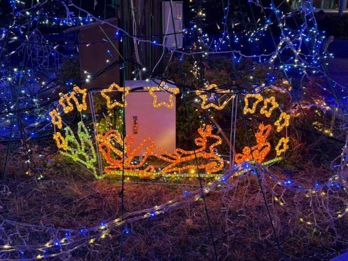 ツリーの下には「サンタクロース」と「トナカイ」の電飾も!意外と凝ったつくりをしていて、写真の撮りがいがありました。