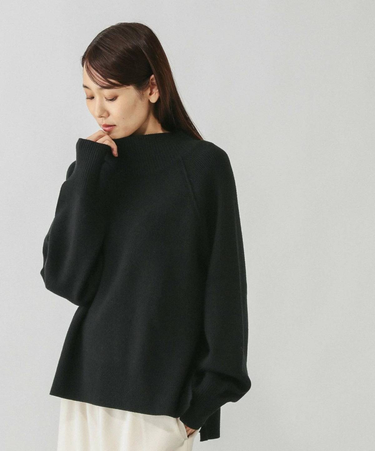 ゆるっとしたシンプルなハイネックデザインのトップス。
