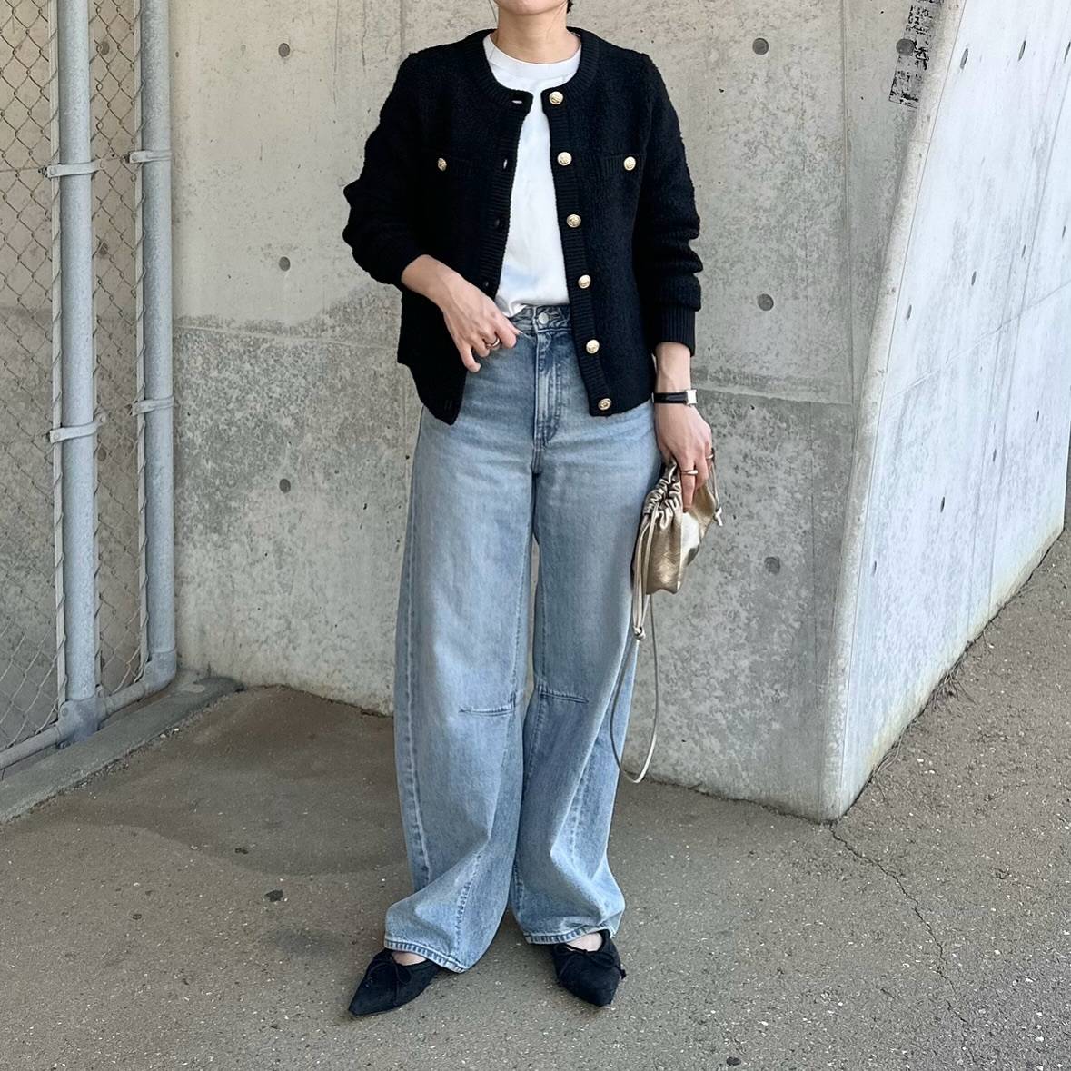 【12月編】センスいいカーディガンコーデ①ノーカラージャケット風×デニムパンツ