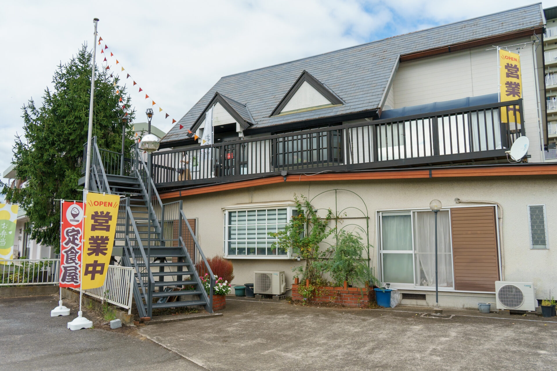 大分川沿いの河川敷を車で走っていると、「お弁当」「定食屋」と書かれた旗が見えてきます。