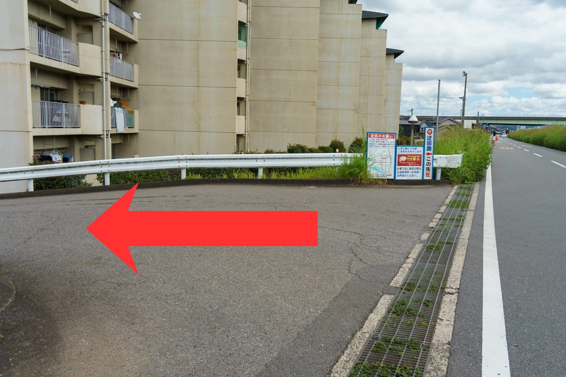 地下駐車場はお店と市営住宅の間の道を下っていくとあります。