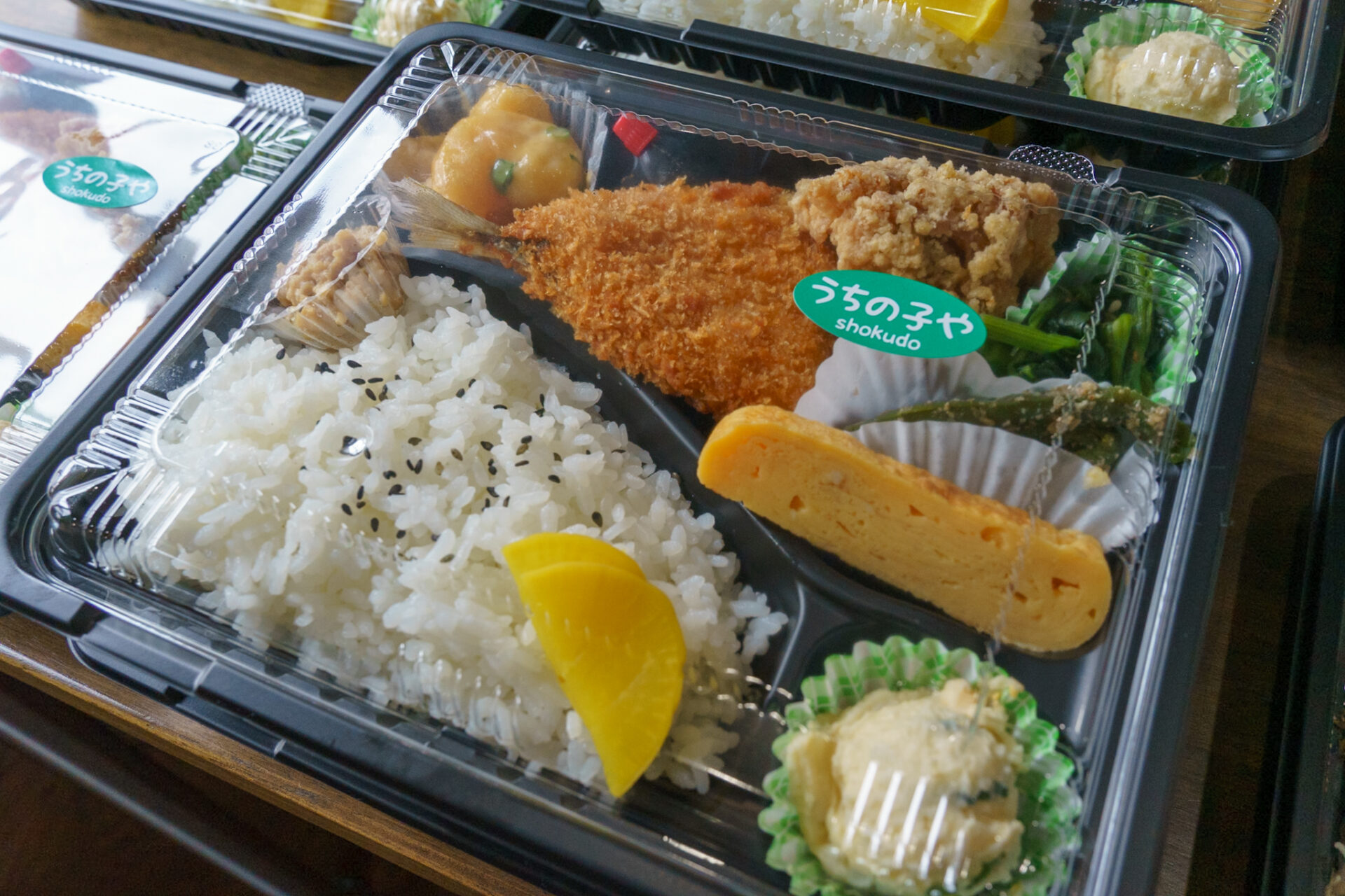 唐揚げやフライだけでなく、日替わりの副菜も数種類入っていていろいろなおかずを一度に楽しむことができます。