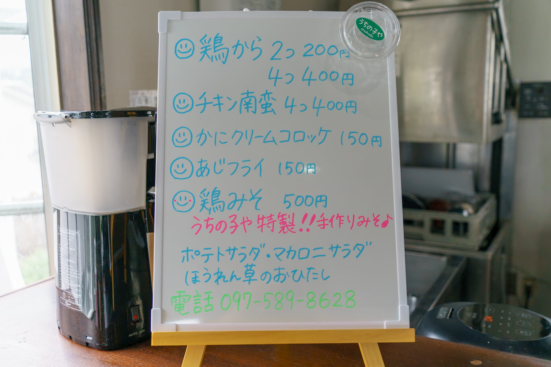 店名うちの子や住所〒870-0889 大分県大分市荏隈910−9定休日不定休(※インスタグラムでお知らせ)営業時間お弁当・お昼ごはん 10時半〜15時