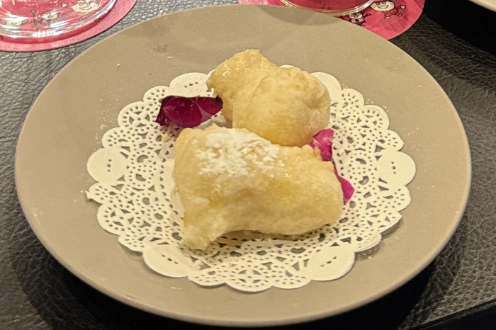 「ベビーピザ」は、「QBBチーズDE鉄分ベビーチーズ」を使った揚げピザ。ふわりと香る青のりと程よい塩気、もちもち食感がたまらない一品。甘いモクテルと合わせると、甘じょっぱさが止まりません。