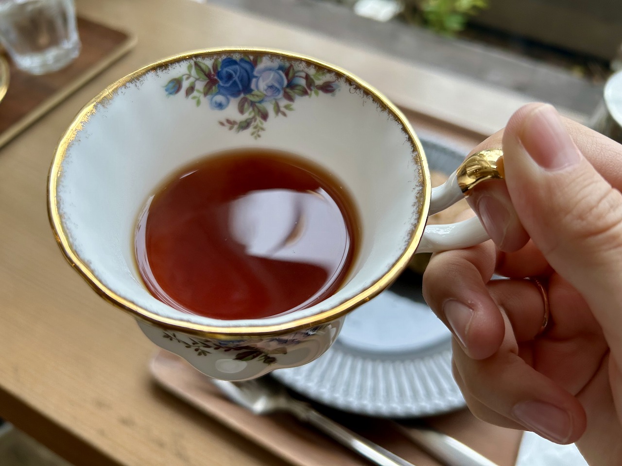一緒に注文したジャルダンブルーという紅茶は中国茶、セイロン茶ベースの紅茶で、華やかで気品のある香りが特徴です。