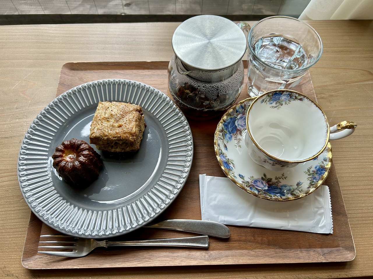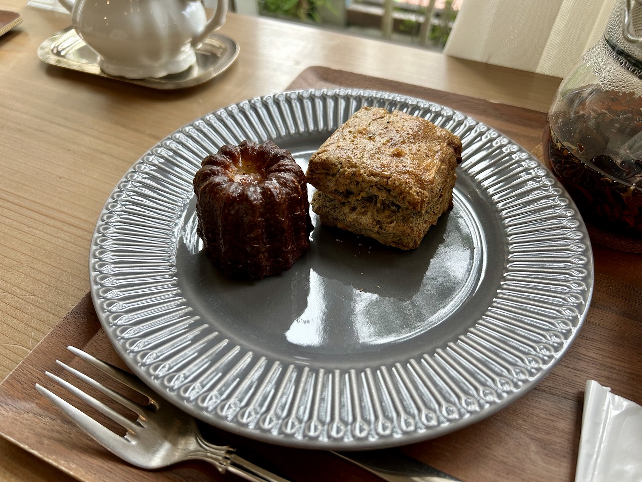 今回は、商品の中で気になったスコーンとカヌレ、紅茶をチョイス。