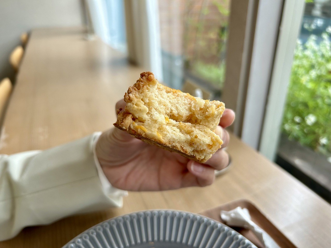 チェダーチーズスコーンは先ほど紹介したほうじ茶のスコーンとは異なり、甘さのないスコーン。