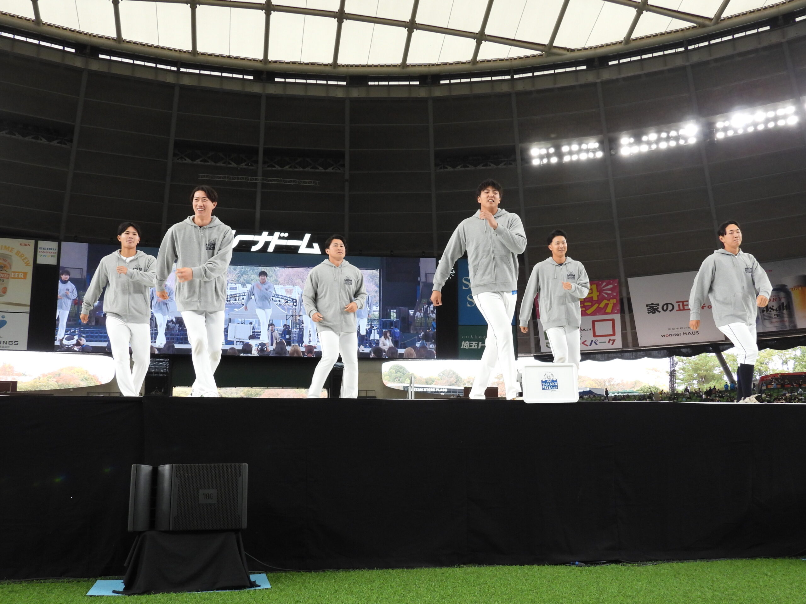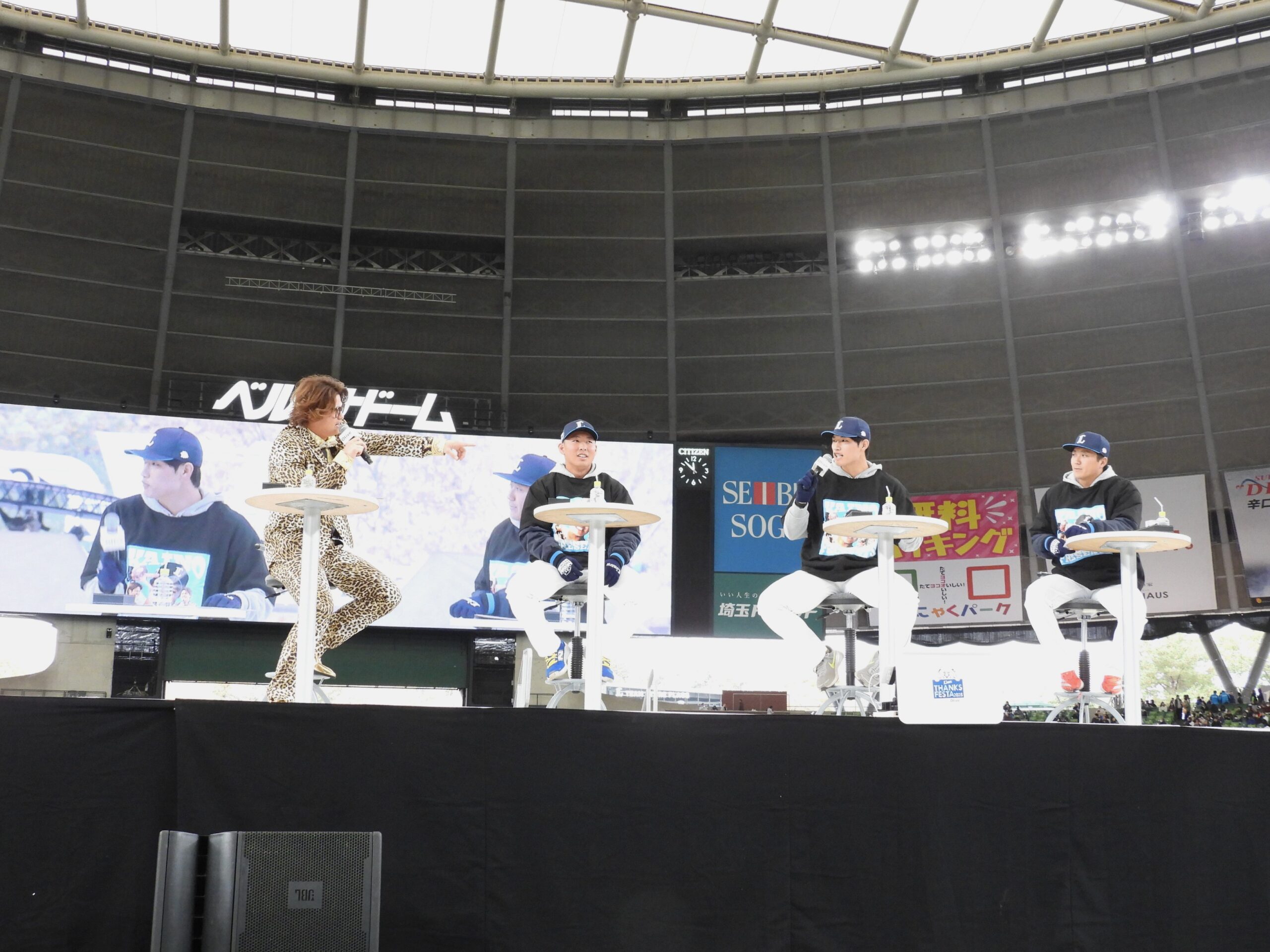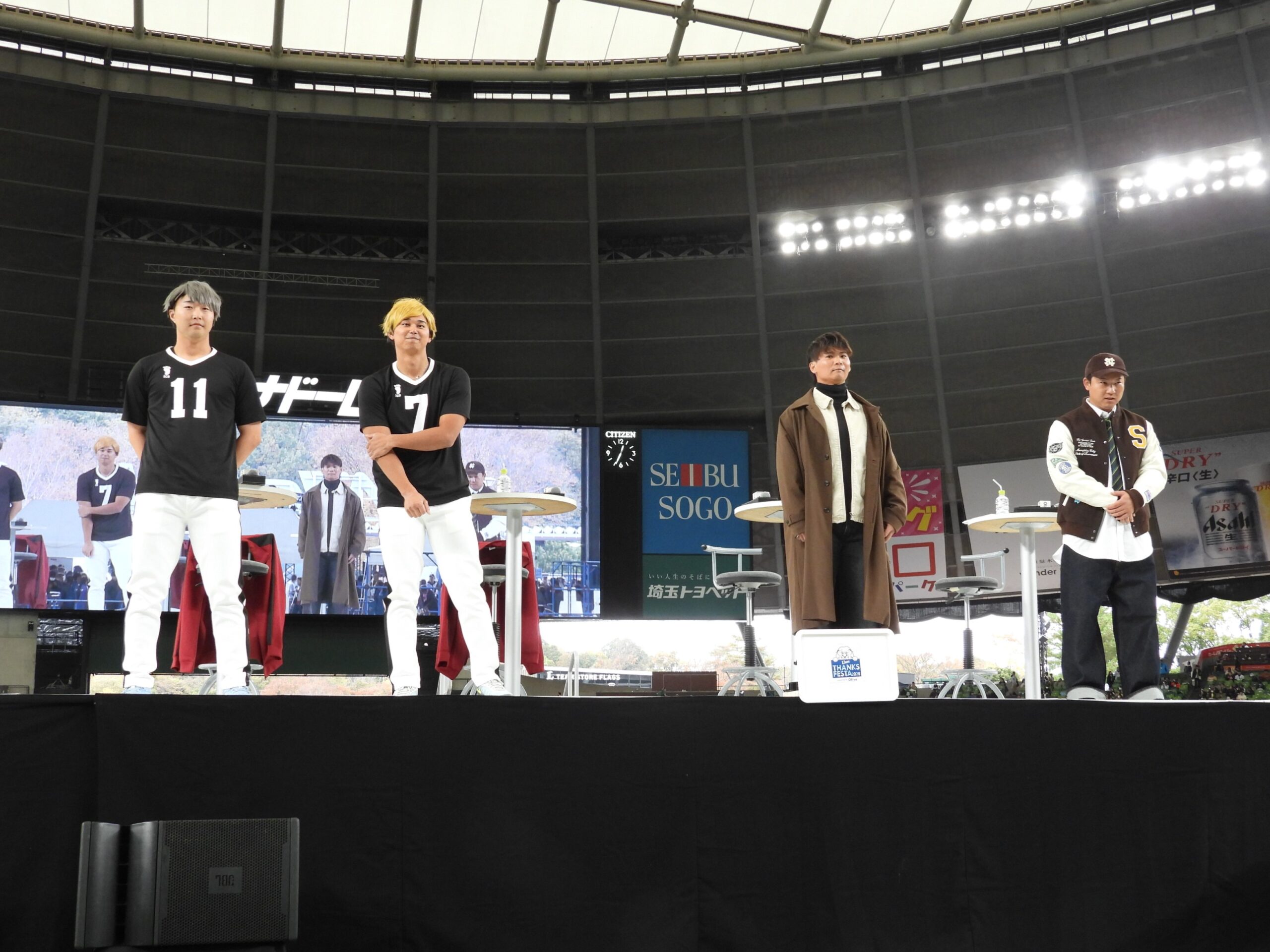 「圧倒的至近距離」カメラでお互いを撮影したり「ライオンズで一番おしゃれだと思う選手は」「生まれ変わるならどの選手?」といった質問コーナー、「パターゴルフリレー対決」での、オフならではのゆるくてカッコいい姿に場内は盛り上がっていました。