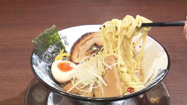 さらに乾煎り桜海老が旨味を引き立てます。中太麺に絡むと、奥行きのある味わいとキレが楽しめますよ。
