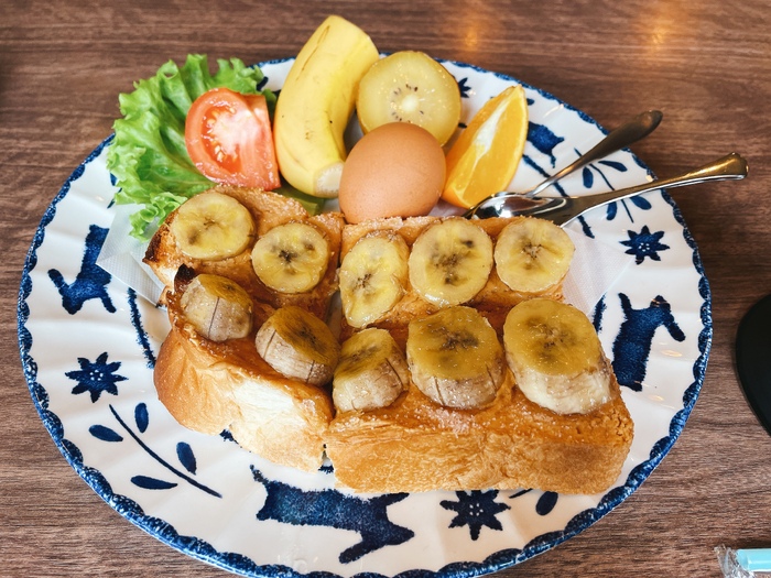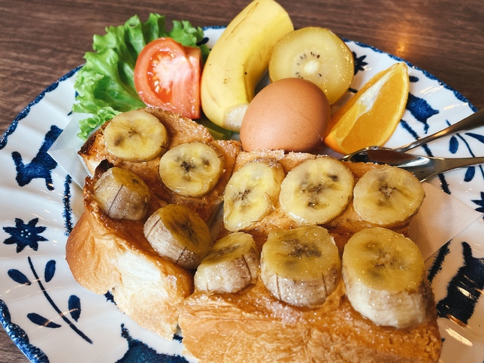 今回はお昼のパンメニューの中から『ピーナッツバナナトースト』(1,000円)をチョイスしました!<コーヒー・紅茶などドリンク付き>