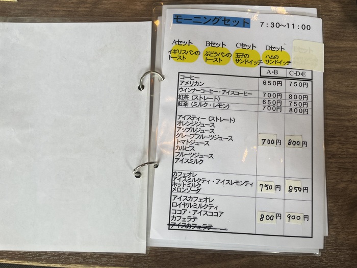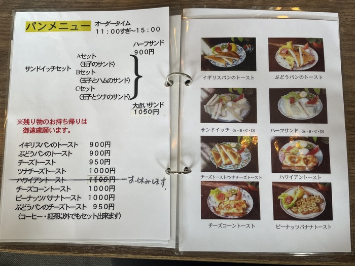 お店は朝8時から営業。お昼のパンメニューは11時過ぎからでトーストセット・サンドイッチセットは8種類用意されています。