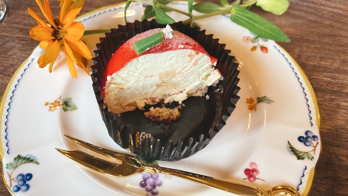 見た目も華やかな「真赤なりんごのケーキ」(飲み物付き・800円~)