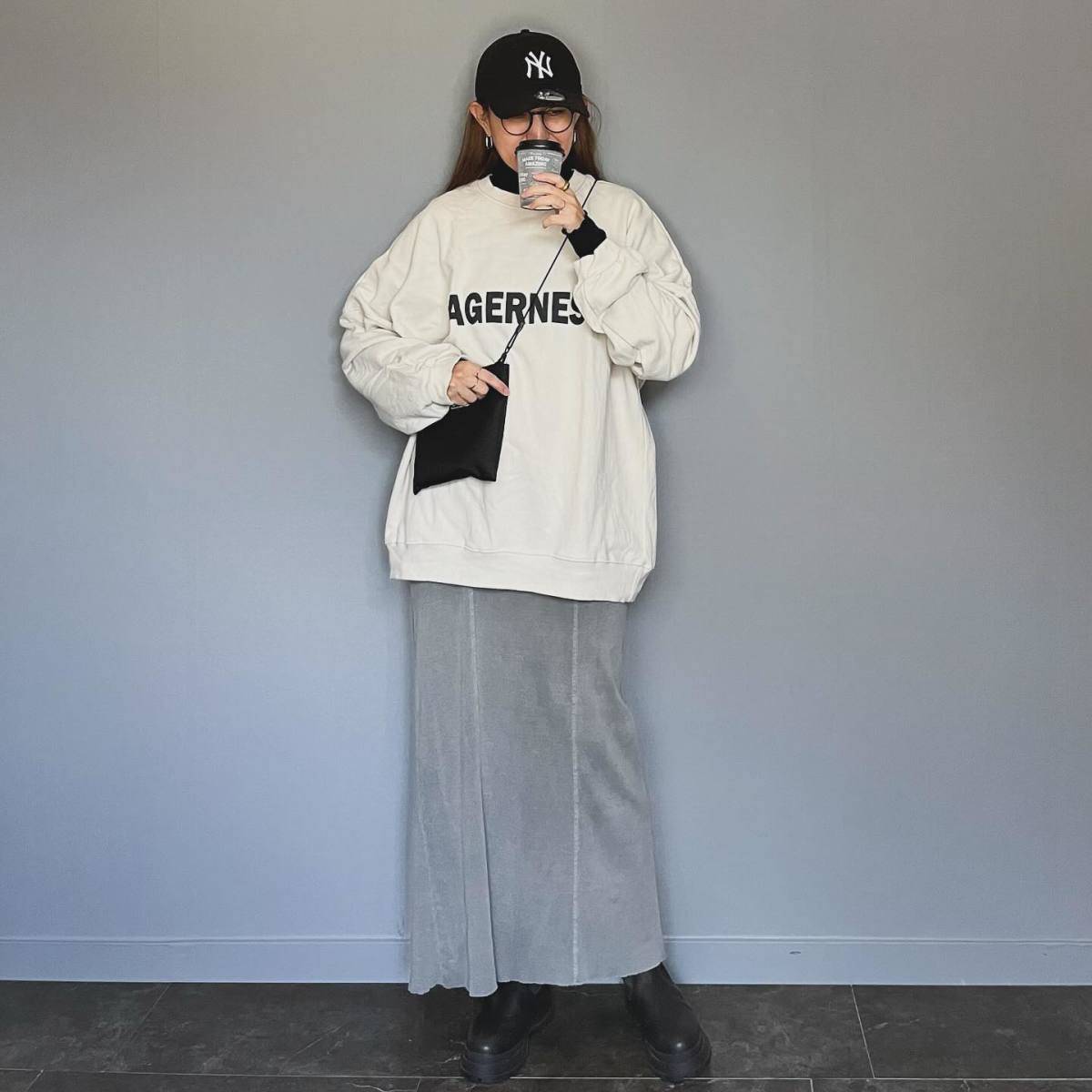 【初冬編】老け見えしないスカートコーデ③ロゴスウェットを合わせる!