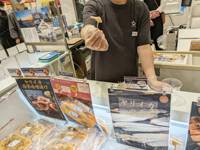 こちらは、千葉県『飯岡ヤマイチ水産』の「ヤリイカの西京味噌漬け(150g)」(1,296円・税込)。記者も1つ試食させていただくと、プリップリのイカがまろやかな西京味噌と合わさってGOOD!