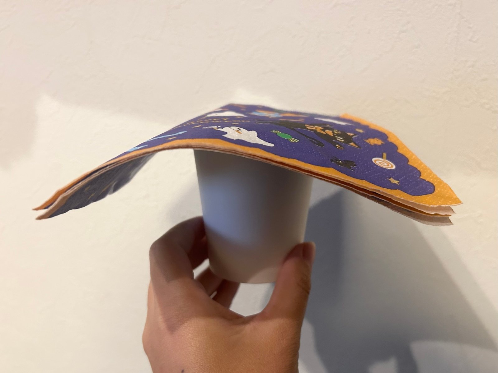 ペーパーナプキンを使い、紙コップをラッピングする方法をご紹介します。