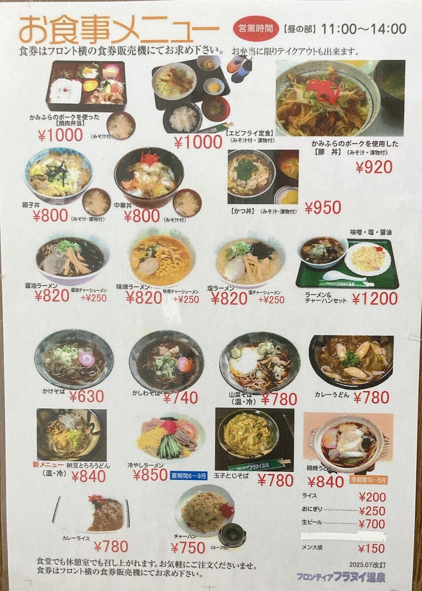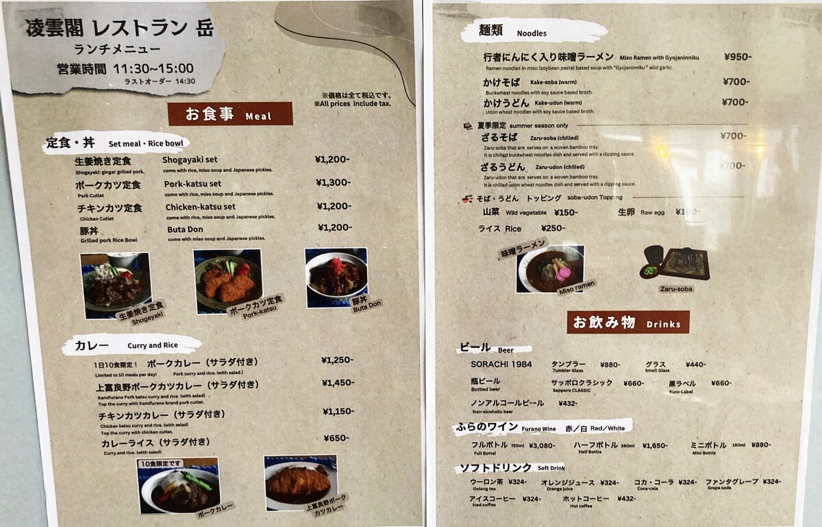 かみふらのポークを使った焼肉弁当や豚丼のほか、ラーメン・そば・カレーなど豊富なメニューが揃い、ほとんどが1000円以下というリーズナブルさも魅力です。