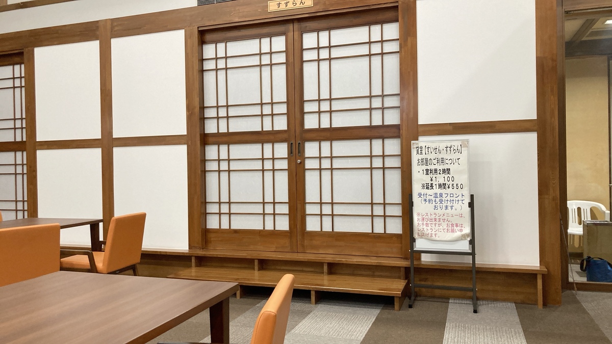 大広間の休憩所もあり、ゆっくり足を伸ばしてくつろげます。