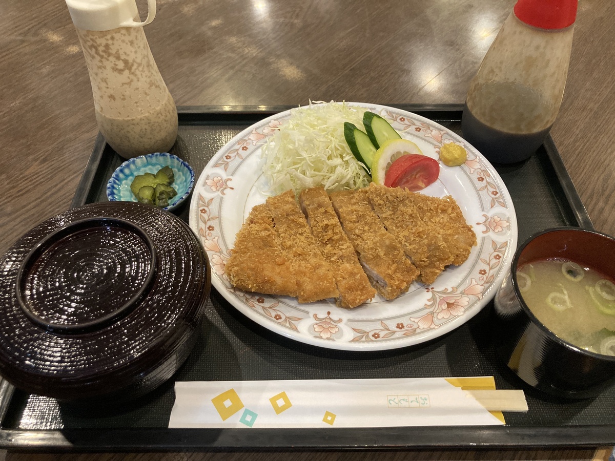 私が選んだのは「ひまわりトンカツ定食(税込1400円)」。ご飯は地元産の「ひまわりライス(おぼろづき)」を使用し、ブランド豚「ひまわりポーク」は柔らかく衣はサクサク。レモンも添えられており、最後までさっぱりといただけました。