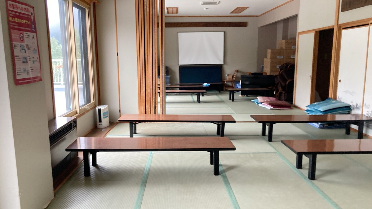 温泉後は休憩所でゆったり。テレビもあり、食堂の料理をこちらで楽しむこともできます。