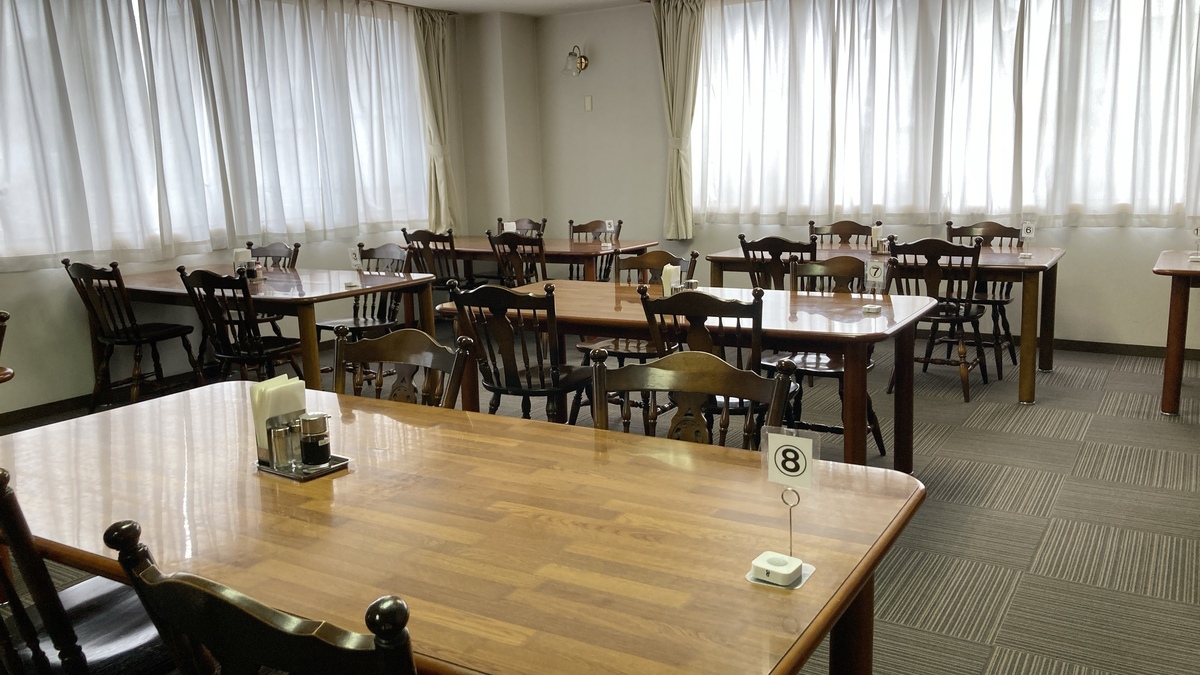 食堂は昭和レトロな雰囲気ですが清潔感があり、座り心地の良いテーブルと椅子でゆったり過ごせます。