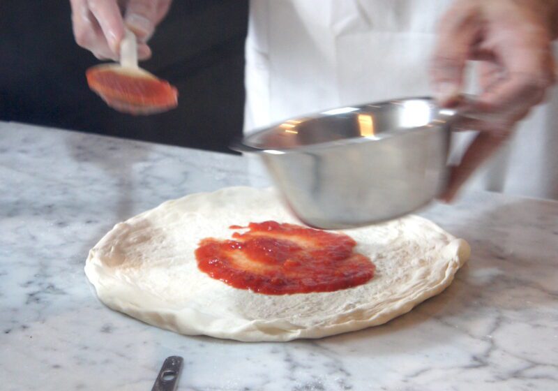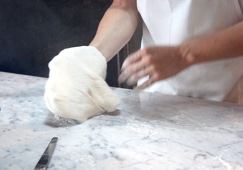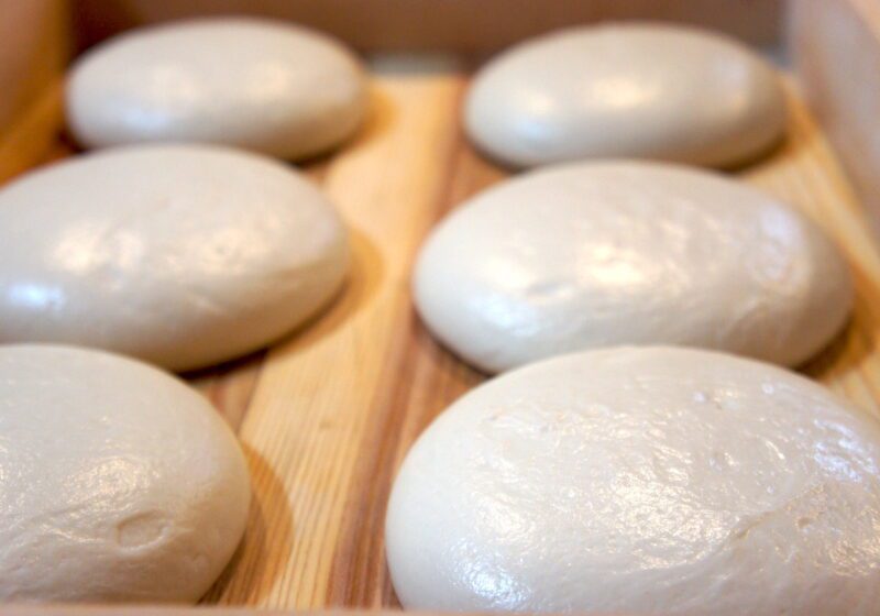ピッツァは柿沼さんのレシピをベースに、「東京と福岡では気候も水質も違うので」と粉の種類や水との配分など福岡の地でベストと思えるかたちにアレンジ。「生地はとてもデリケート。たとえば湿度が1%、あるいはイーストが1g違うだけでも発酵具合が変わるので、毎日それをアジャストしていくことが特に重要だと感じています」。