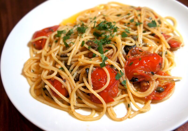 パスタは「ポモドーロ」(1,200円)と「プッタネスカ」(1,500円)の2種類があり、こちらは「プッタネスカ」です。トマトの酸味にアンチョビのコクが混じり合い、さらにブラックオリーブとケッパーのアクセントが加わり、絶妙なおいしさでした。