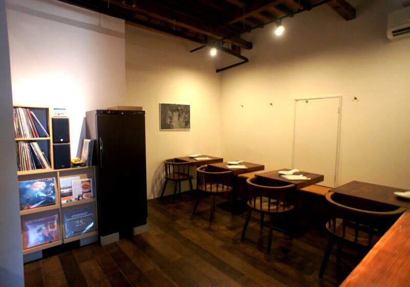 窯と煙突が設置できる物件はあまりなく、見つけたのは別府5丁目にあった元ヘアサロンの空き店舗でした。そこをシンプルで、広々とした空間へと改装。「音楽もやっぱり自分の人生の一部なんです」と、中古レコードの販売も行っています。