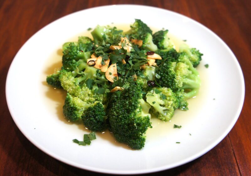 ピッツァ以外にも前菜やパスタ、ドルチェも楽しめます。写真は前菜の「ブロッコリー」(1,400円)で、オリーブオイル、ニンニク、トウガラシで炒めたいわばブロッコリーのペペロンチーノ。スパークリングワインや白ワインのお供にしたい一品です。ハーフサイズ(700円)もあります。
