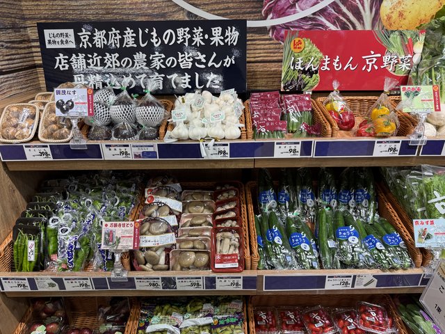 京都産の食材にも力をいれられており、青果売場の一角には京都産の野菜や近隣農家さんの品が並びます。