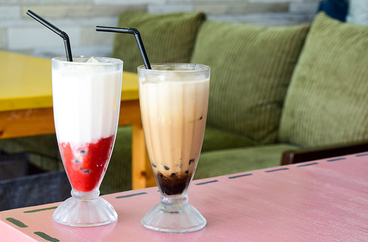 『いちごミルクタピオカ』660円、『自家製黒糖ミルクティー』715円