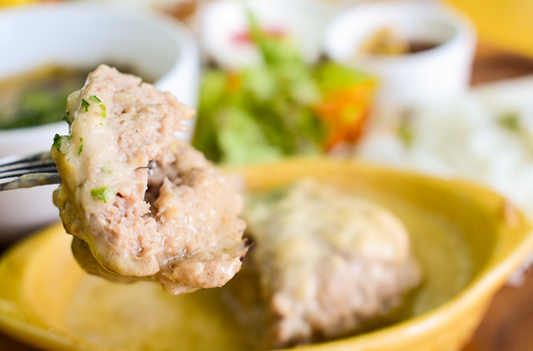 選べるソースが、定番から季節限定までそろう『ハンバーグプレート』。何といっても自慢は、肉汁たっぷりのふわふわハンバーグ。フライパンで香ばしい焼き目を付け、オーブンでじっくり火を通すことで、肉汁を閉じ込めたジューシーでやわらかな仕上がりにしています。