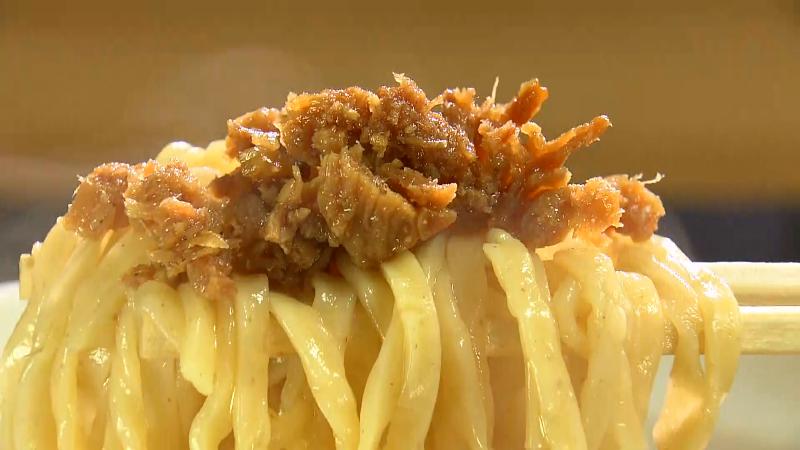 清水港で水揚げされたマグロを長時間煮込んだスープに、中太麺を合わせた一杯。