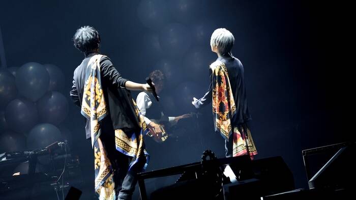 ふたりは観客とコミュニケーションを取りながら自然体のトークを繰り広げると、そらるの「(3daysのライブのうち)今日だけの曲をたくさん持ってきているので、1日遅れのハロウィンを一緒に楽しみましょう」という言葉をきっかけに、「ロウワー」で憂いを感じさせるミステリアスなボーカルを響かせ、「EYE - Arrange ver. -」でダークかつエモーショナルなムードを作り出す。その後はまふまふが「皆さんまだまだ盛り上がってまいりましょう!」と呼び掛けてユーモラスでアッパーな「極楽地獄」へ。火の玉が次々と打ちあがり、ふたりもスケールが大きくのびのびとしたパフォーマンスを見せる。余裕を感じさせる佇まいに観客も全力でコールを送った。