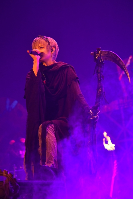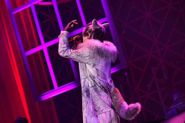 ハロウィンをイメージしたオープニングムービーの後、ステージ下から狼男姿のそらると、死神姿のまふまふが登場する。キービジュアルと同じコスチュームに身を包んだふたりは、「Mrs.Pumpkinの滑稽な夢」で3days初日の幕を開けた。そらるの落ち着いた低音とまふまふの張りのある高音によるツインボーカル、洋館を模したステージセットとトーチが楽曲のムードをより高める。続いて2019年にAtRがリリースしたハロウィンソング「ユメクイ」を披露し、そらるの情熱的なボーカルとまふまふのクールなラップが会場のテンションをさらに高揚させた。