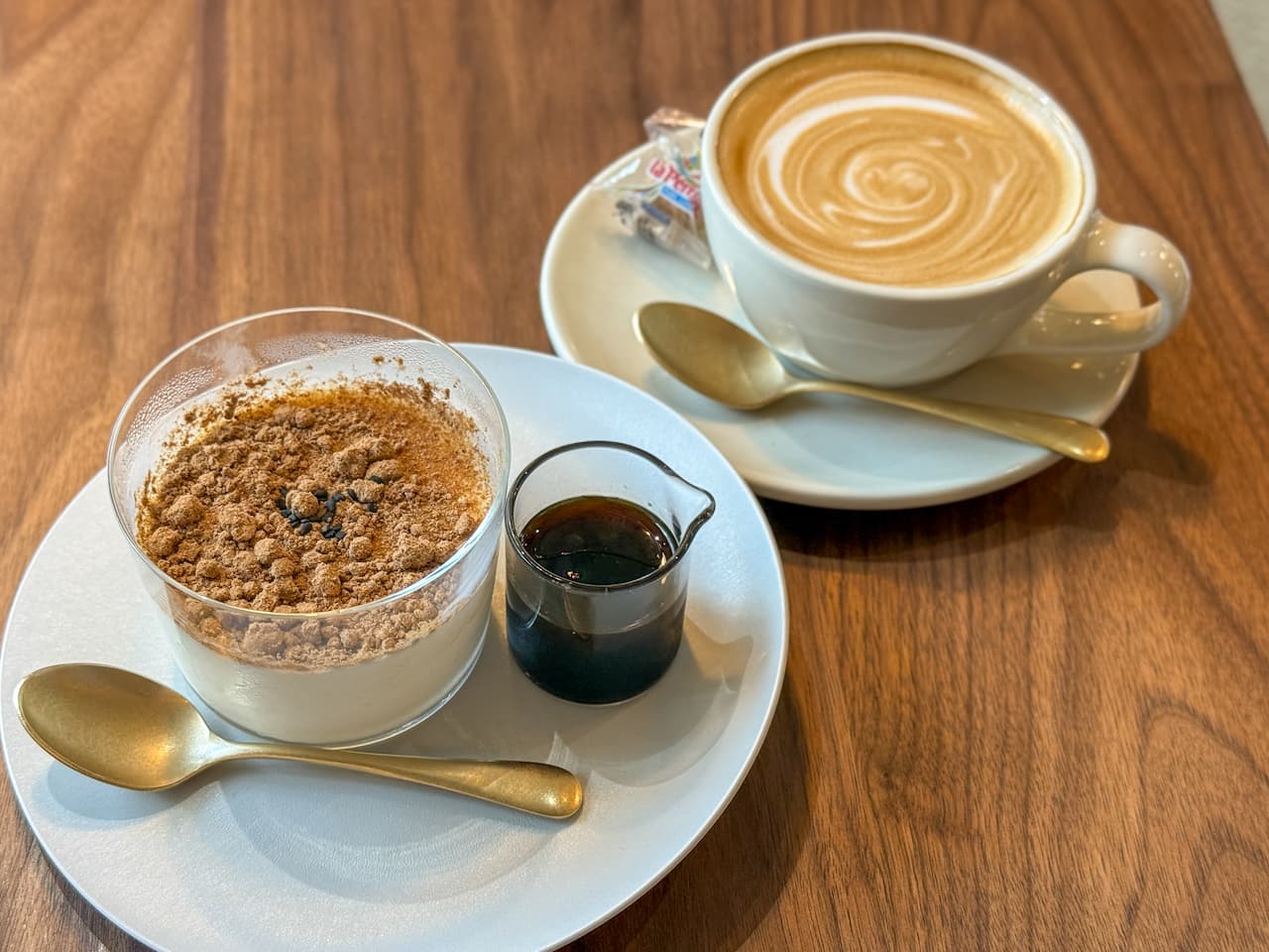 「濃厚豆乳プリン」630円、「カフェラテ」(単品:670円、ランチセットで注文の場合:470円)