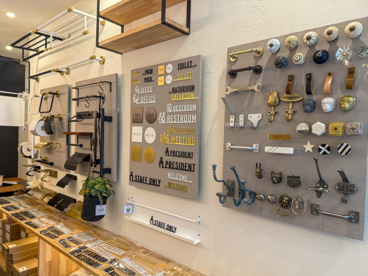2階にはDIYにおすすめのパーツ類が多数展示されており、1階とはガラッと雰囲気が変わります。気になった方は、おいしいご飯とお気に入りのインテリアを探しにぜひ足を運んでみてくださいね!