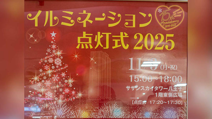 サザンスカイタワー八王子 東側広場で『イルミネーション点灯式2025』が行なわれます。開催は11月3日(月・祝) 15:00〜18:00の予定です。
