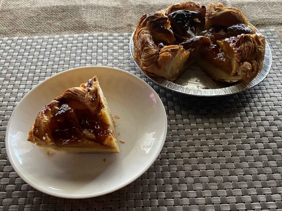 また、サクサク食感のパイ生地もおいしくて、1/6切れで十分満足なんて書きながら、一気に半分食べてしまいました。