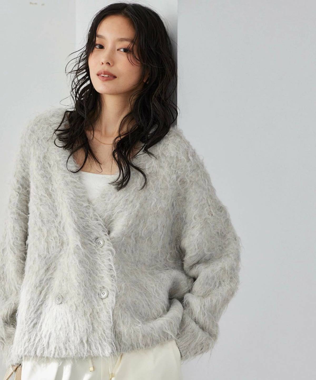 たっぷりとしたニットファーカーディガンは、季節感のあるアイテムで2025年初冬に大活躍♪