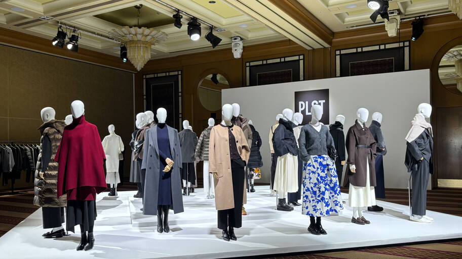 2025年秋冬コレクションでは、滑らかなウール混素材のロングコートやシャツコート、自宅で手洗い可能な中綿ブルゾンなど、機能性とデザイン性を両立させたアイテムを展開。特に一枚仕立てのウール混ロングコートは「新生プラステ」の象徴として打ち出す。軽く、羽織るだけでスタイルが決まるシルエットを追求したという。