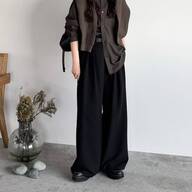ワイドシルエットの黒パンツは、穿くだけで今っぽく見える優秀なアイテム♪