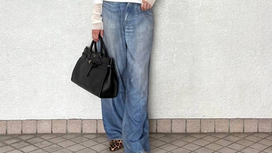 トップスには、とろみのある質感のデニムシャツを合わせると◎