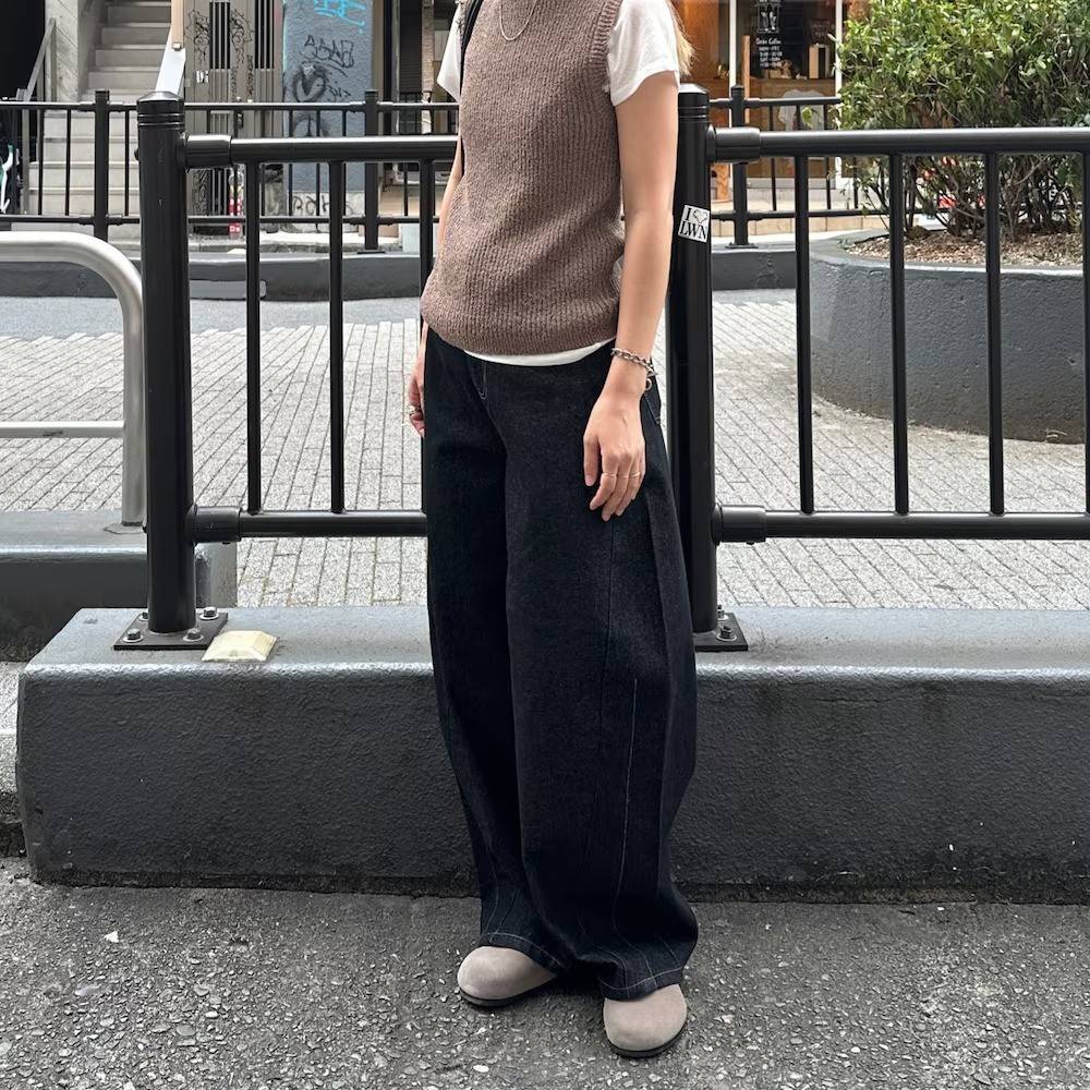 【初秋編】今っぽい黒パンツコーデ⑤Tシャツ×ベストの重ね着が◎