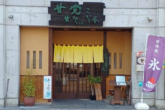 明石駅南口から徒歩約5分。「魚の棚商店街」の通りを抜けるとすぐ目の前にある『こかく庵』(明石市)。大正6年創業の老舗の甘味処です。