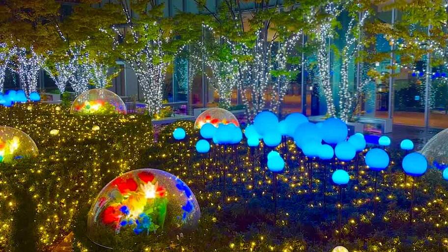 今回のテーマは「青の洞窟 THE SNOWMAN」。昨年好評だった巨大バルーン演出を進化させ、雪だるまの姿に! より親しみやすく温かな世界観になっているのだそう。バルーンには、雪や星、オーロラを思わせる映像を投影し、見る角度や時間帯によって異なる表情に。