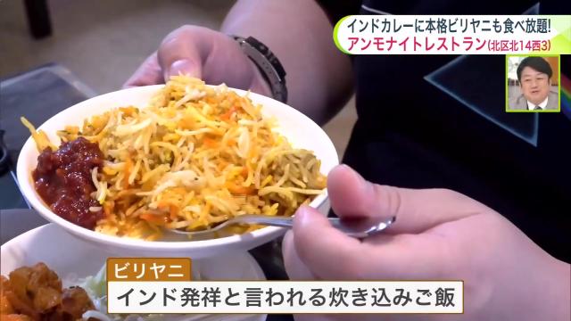 『アンモナイトレストラン 札幌店』では、インド発祥の『ビリヤニ』という炊込みご飯も食べ放題。