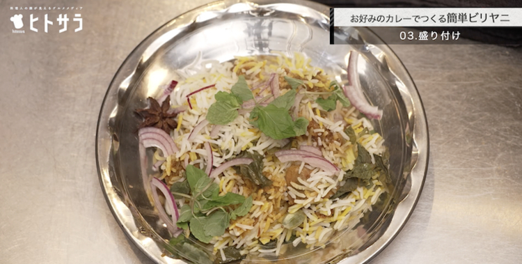 プロの料理人が教える簡単レシピシリーズ「一流シェフのヒトサラレシピ」。スーパーで手に入る食材だけで、3つのポイントを押さえればシェフの味を自宅で再現することができます。今回は【SPICY CURRY 魯珈】の齋藤絵理シェフに炊飯器でふっくら炊き上げたバスマティライスとお好みのカレーでつくる『ビリヤニ』を教えていただきました。動画としてはレシピ初公開です。