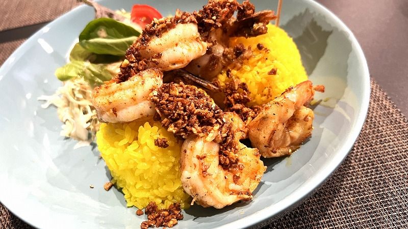 ぷりっぷりのエビとガーリックの香ばしさが口の中に広がります!