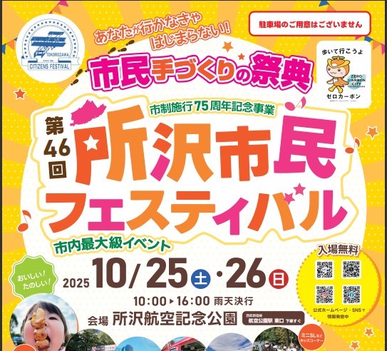市内最大級イベント所沢市民フェスティバルが今年も開催!【2025年10月25日(土)、26日(日)】